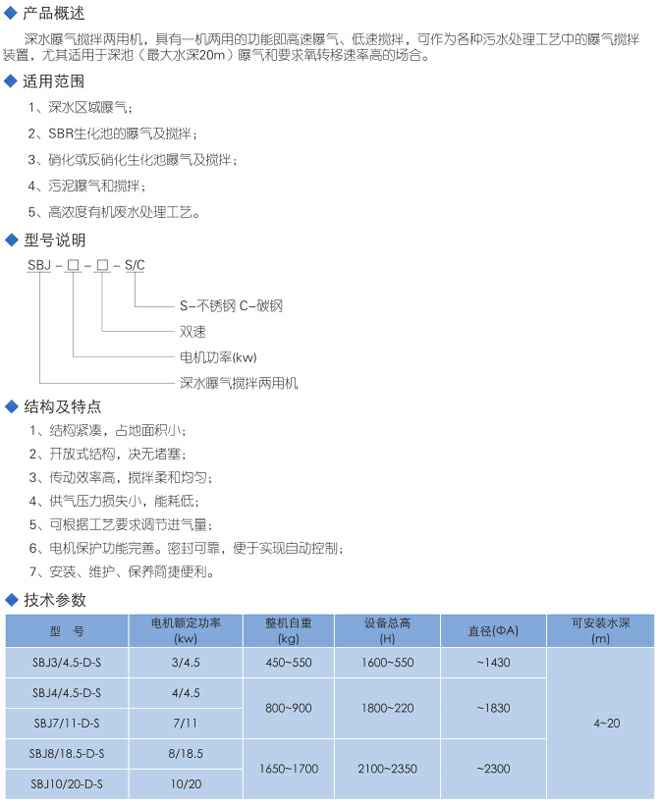 SBJ型深水曝气搅拌两用机